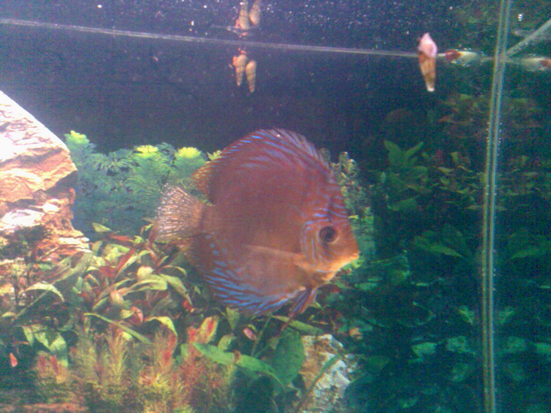Рыба не больна...просто нет времени на нормальный уход за ним..точнее их было 5 штук....поэтому и отдаю. Хочу просто штук 50 неонов запустить или африканцев каких, за ними уход попроще, чем за дискусами. Хотя для меня сейчас только проблема воды и сифонки грунта остро стоит, остальное все нормально, большой аквариум, большой биофильтр, круглосуточная очистка воды... P.S. Когда дискус болен, он теряет окраску, становится темным и плавники плотно прижаты к телу...