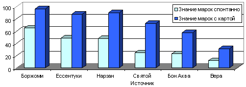 этого я не говорил. Просто раскрученные марки. Некоторое время назад независимым институтом РОМИР проведено исследование рынка минеральной воды. Оно проходило в 18 крупных городах России. Всего в опросе приняло участие 1006 человек в возрасте от 16 до 49 лет, чей месячный доход превышает 2 тыс. рублей. Опрос проходил методом личного интервью по месту жительства респондента. Наиболее известными марками минеральной воды оказались отечественные брэнды, существующие на рынке в течении многих десятков лет — «Боржоми» — 65% опрошенных сказали, что знают эту марку воды, «Ессентуки» (48,2%) и «Нарзан» (47,8%).