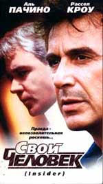Ну раз ни кто не знает, говорю ответ. Свой человек /The Insider/. 1999г. реж. Майкл Манн. В главных ролях Аль Пачино и Рассел Кроу. Сюжет: В поисках консультанта по проблеме табачной промышленности, журналист и продюсер популярнейшей передачи "60 минут" выходит на недавно уволенного химика могущественной табачной корпорации. Химик дает интервью, в котором обвиняет бывшее руководство в клевете и замалчивании фактов, после чего его начинают преследовать люди, нанятые компанией, счета аннулируют. Вместе с химиком до конца решает идти и журналист, для которого дело о корпорации стало личным... В 2000г. фильм выдвигался на Оскар в 7 номинациях. 1. Лучшая мужская роль - Рассел Кроу 2. Лучший режиссер - Майкл Манн 3. Лучший Оператор -Данте Спинотте 4. Лучший фильм года 5. Лучший монтаж 6. Лучший звук 7. Лучший адаптированный сценарий Неужели ни кто не слышал?