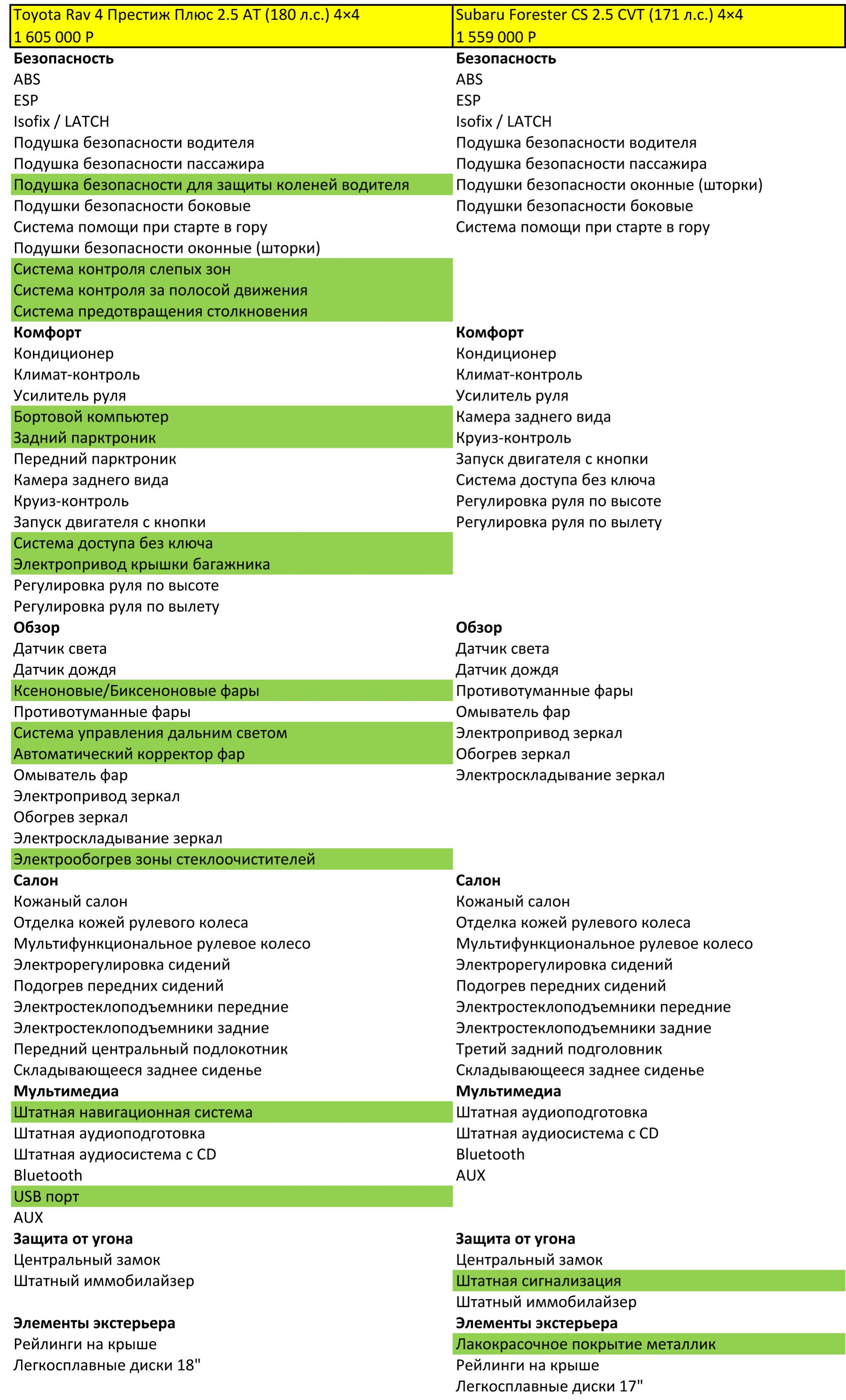 JampeR, набросал табличку, взяв данные у Яндекс.Авто. Из выделенного равовского "фарша" нет ровным счётом ничего стоящего, ну, кроме биксенона. Всё остальное - исключительно для "блондинок". Этот "4x4" умудряется застревать в сугробах "начального уровня", по которым даже переднеприводные корейские одноклассники пробегают не глядя, не говоря уже про лесничих с их постоянным полным.