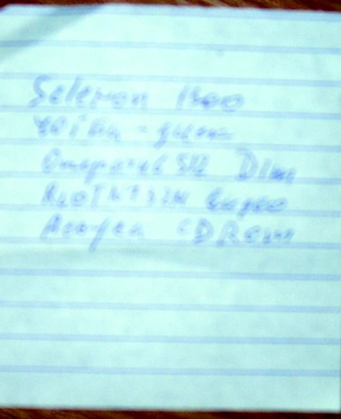 Знакомый продает, просит оценить: Seleron 1300, 40 Гба-диск, оперативка 512 Dim, Rlotnt32m-видео, Accyca CDrom. Орфограграфия владельца сохранена .