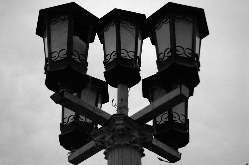 Хотелось создать снимок, с такой суровой атмосферой, или грустью... Вообще задумка была - фонари на фоне грозовых облаков, в ЧБ + пленочное зерно... Но облаков сегодня не было. Небо было однотонным. В общем что получилось, то получилось Принимайте работу!