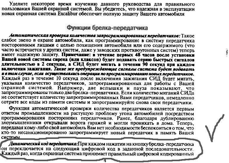RUS, ну да, по-моему антискаер и называется.... А ещё брелки там в систему самостоятельно прописываются. Пример (смотрю в шкаф) - очень древний, и недорогой относительно, наверное, eXcalibur AL-1000atv - лежит уже лет 5 там. Но другой стоит у отца на жипе...