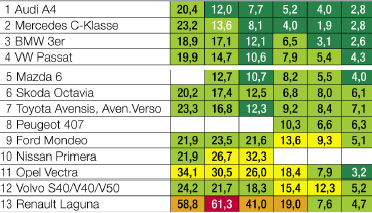 В приведенных ниже таблицах автомобили расположены по порядку убывания надежности – то есть самые лучшие машины в том или ином классе находятся в первых строчках.