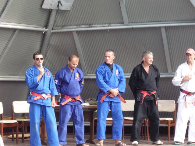 4 июля. На этот день было назначено празднование 20 летия Бушинкана. Началось все с торжественной части. На площадке было постелено татами(примерно 100 кв.метров). Зрители..На сцене Радишевский Е.А. все шиханы. Вступительное слово.. Воспоминания как все начиналось. Потом перешли к награждениям. Знак отличия получали ребята из Приднестровья ставшие чемпионами мира по боевому самбо, четверо ребят из Одессы ставшими чемпионами мира по каратэ, хлопец из Хмельницка ставший призером чемпионата Европы по саньда.. Среди награжденных был и я. мне вручили почетный наградной знак «Бушинкай 3-й степени»(Представляет собой эмблему организации, выполненную из серебра 925 пробы, весом 2 гр, покрытую цветной эмалью.Почетным знаком «Бушинкай 3-й степени» награждаются члены организации, которые вносят весомый вклад в развитие организации в регионах, активно участвуют в конгрессах, показательных выступлениях и других мероприятиях.)..Помимо прочего все участники лагеря получили в подарок новую книгу Е.А. Радишевского " Мое джиу-джитсу"... И после этого начались показательные выступления....выступили все.. Каждое отделение..каждый сенсей..каждый шихан..Причем выступления то никто не готовил..Все было спонтанно..Решалось буквально за 15 минут до начала всего мероприятия.. Тем более высоко оценивалась техника выступавших. Отточенная техника ударов, броски, болевые.. Народ встречал каждое выступление на ура. У малых горели глаза- а вот это мой сенсей!! а вот это хлопцы с нашего додзе!))) Завершали показательные выступленния шиханы.. И Радишевский Е.А. Просто круть)))