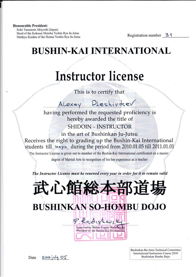 Хомбу прислало будо паспорта и дипломы на кю. Так сказать полным ходом начнем аттестовывать личный состав не прибегая к помощи со стороны. На 12-13 июня запланирован очередной семинар в Михайловке. в нем примут участие представители Даниловки. Есть договоренность о проведении семинара в Суровикинском районе... короче джиу шагает по области)))