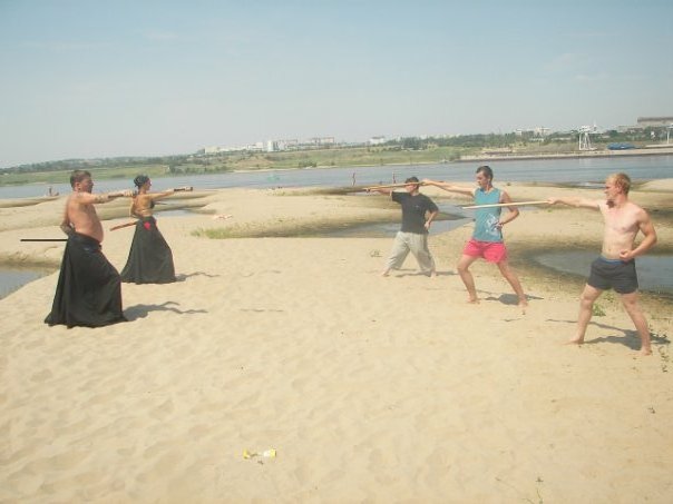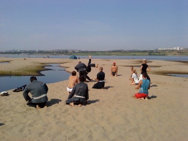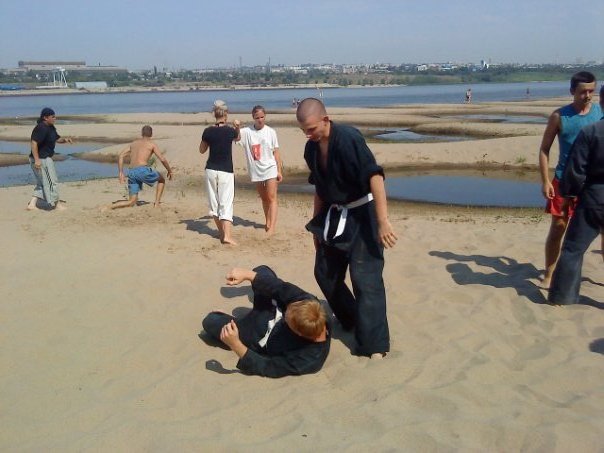 Запланированная тренировка соместно с федерацией иайдо состоялась..и удалась. Народу было не особо много. От джиу-джитсу 6 человек, иайдо-3 человека, три представителя каратэ Сетокан, СПАС-1 человек. Добрались до острова, нашли местечко, скинули сумки, переоделись.. И вперед))) Мероприятие начал я. Небольшая разминка. Отработка в парах коши наге, сеой наге, сеой отоши наге . После чего перешли к комбинациям Джукошин рю джиу-джитсу. На часы не смотрели, но думаю все это заняло что то оокло часа. После двадцатиминутного перерыва мероприятие продолжилось под руководством Андрея казачинского- наставника иайдо. Была разобрана ката Сетей ката иппон ме мае. На примере этого же ката были пояснены основополагающие принципы иайдо. после занятия, как и предполагалось, началось поедание всяких вкусностей..а их оказалось предостаточно, купание.. Чтоы отдых медом не казался мои ребята устроили небольшой турнир по не вадза.. Андрей проработал все 10 ката группы Сетей. Надо сказать, что особого ажиотажа у отдыхающих наши упражнения не вызвали. Видимо на пляже о. Сарпиниский частенько проходят подобные мероприятия)))