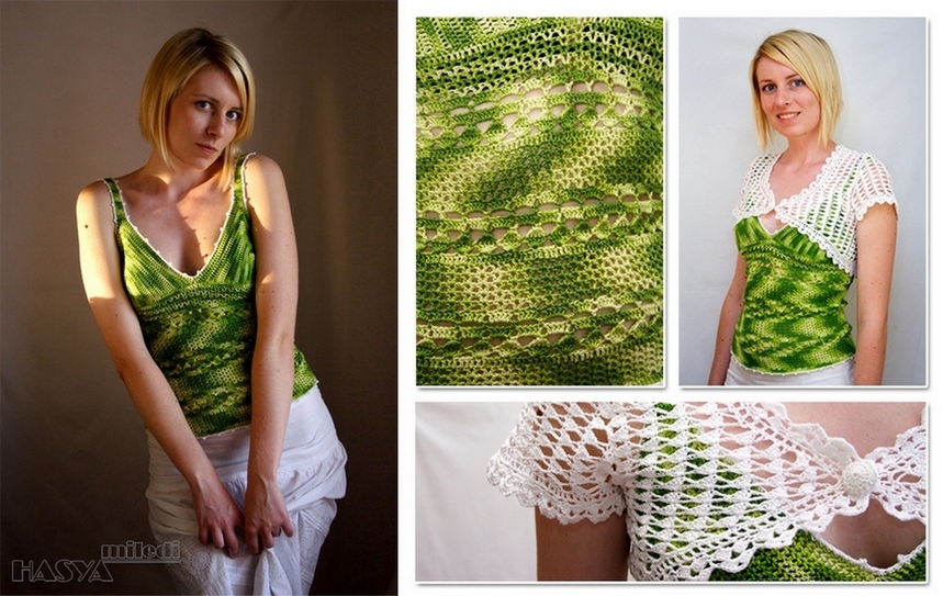 Я конечно понимаю, что на девушке с модельной внешностью любая тряпочка будет смотреться шедевром... в общем результатом я довольна и бесспорно фотосессией! Топ и болеро «В стиле кантри» Топ - расход 3,5 шт. «Бегония» YarnArt секционного крашения, 169 м/50 гр., 100% хлопок, крючок № 2,5. Болеро - расход 2 шт. «Виолет» YarnArt, 282 м/50 гр., 100% хлопок , крючок № 2.