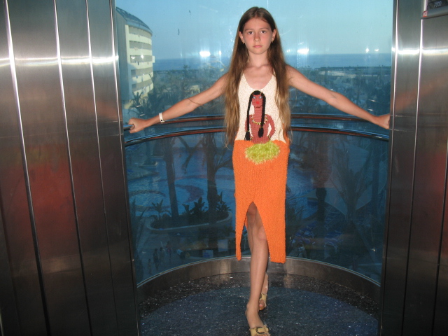 А это моя работа. В Турции в отеле все турчанки и арабки со стонам головами крутили - платье эффектное, на фотке всего не видно. К тому же выгодным оказалось то, что носится долго - связано сверху по типу майки, а майка, как известно, детям долго как раз...