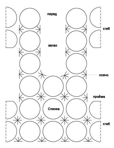 Летний дождь перевела Половинки (пунктирная линия) это линия сгиба, под проймой действительно нужно вязать по пол-мотива. Удачи!