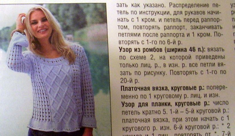 Пиля, лови свои ромбики, нашла наконец-то. выглядеть будут как на фотке, на центр. узоре свитера. Обрати внимание, узор вяжут по схеме, которая нарисована по идиотски - справа на лево..