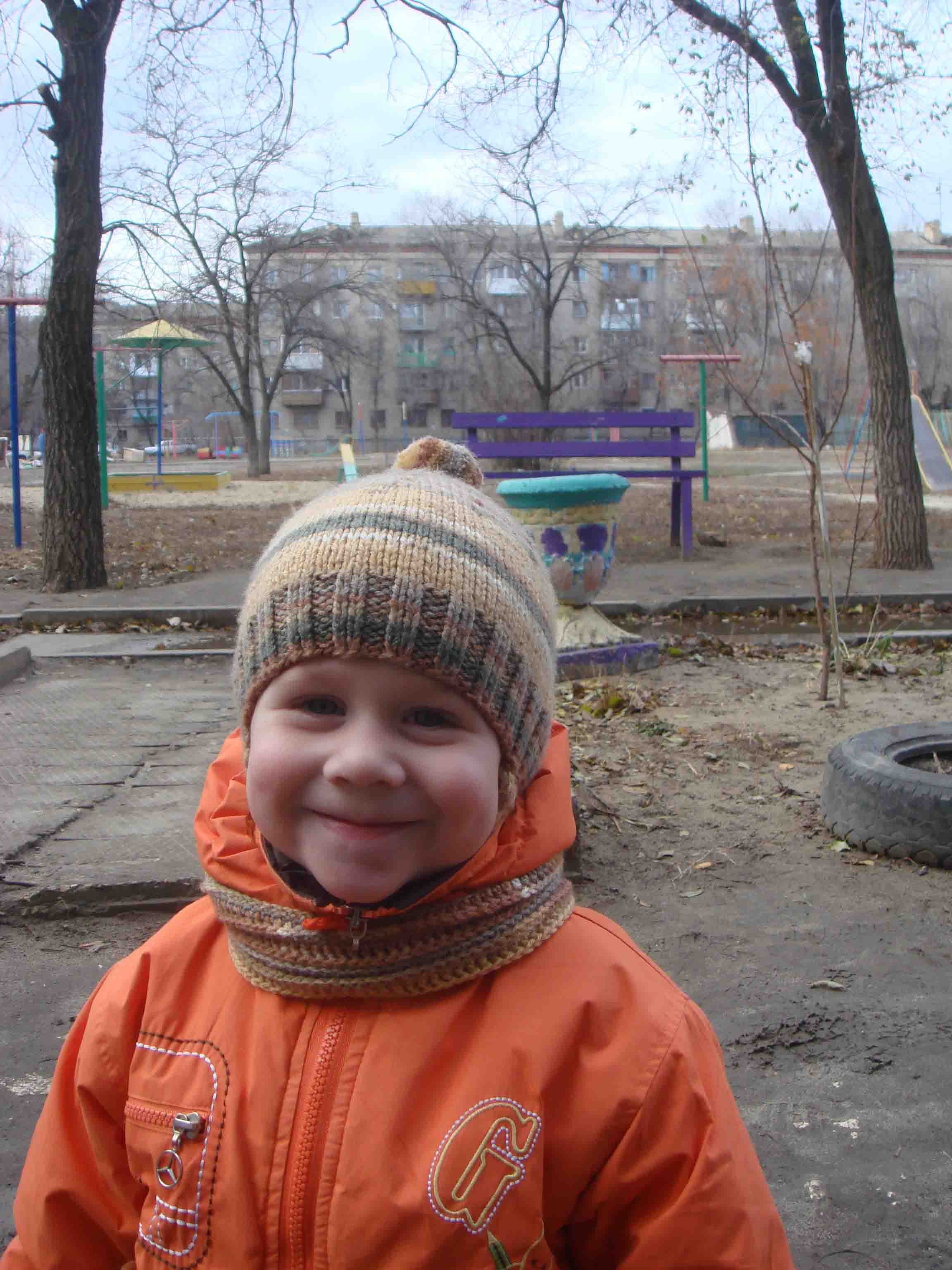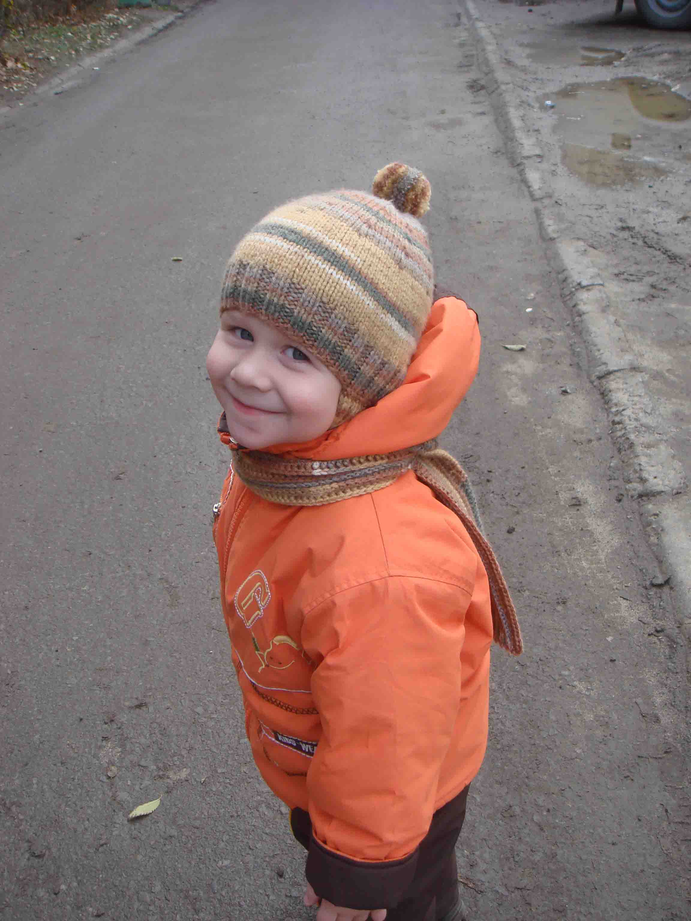 Марина М., сынуля - модель! Классный комплект! А помпоны у меня тоже никогда не получаются такими набитными... всегда жиденькие какие-то