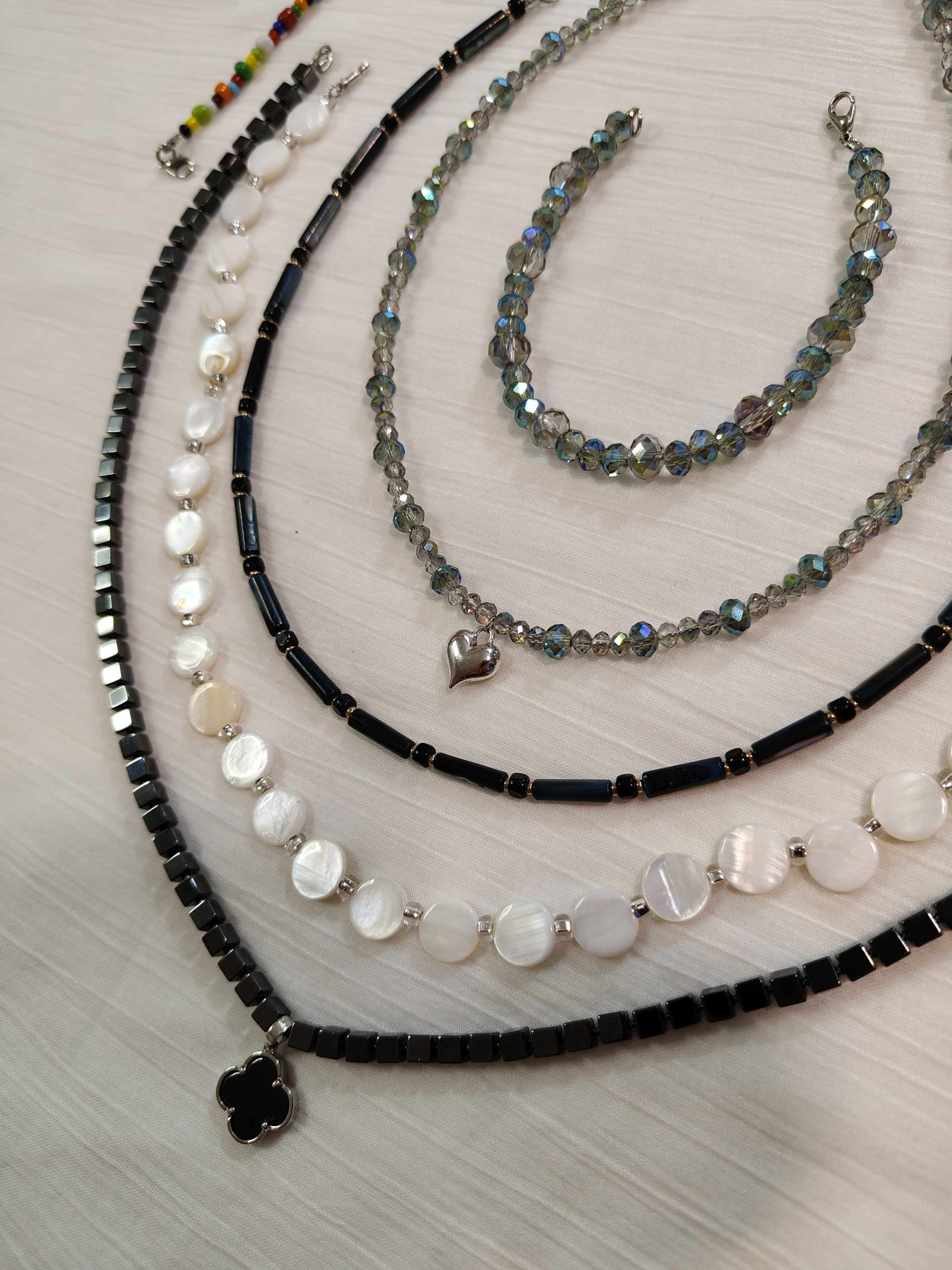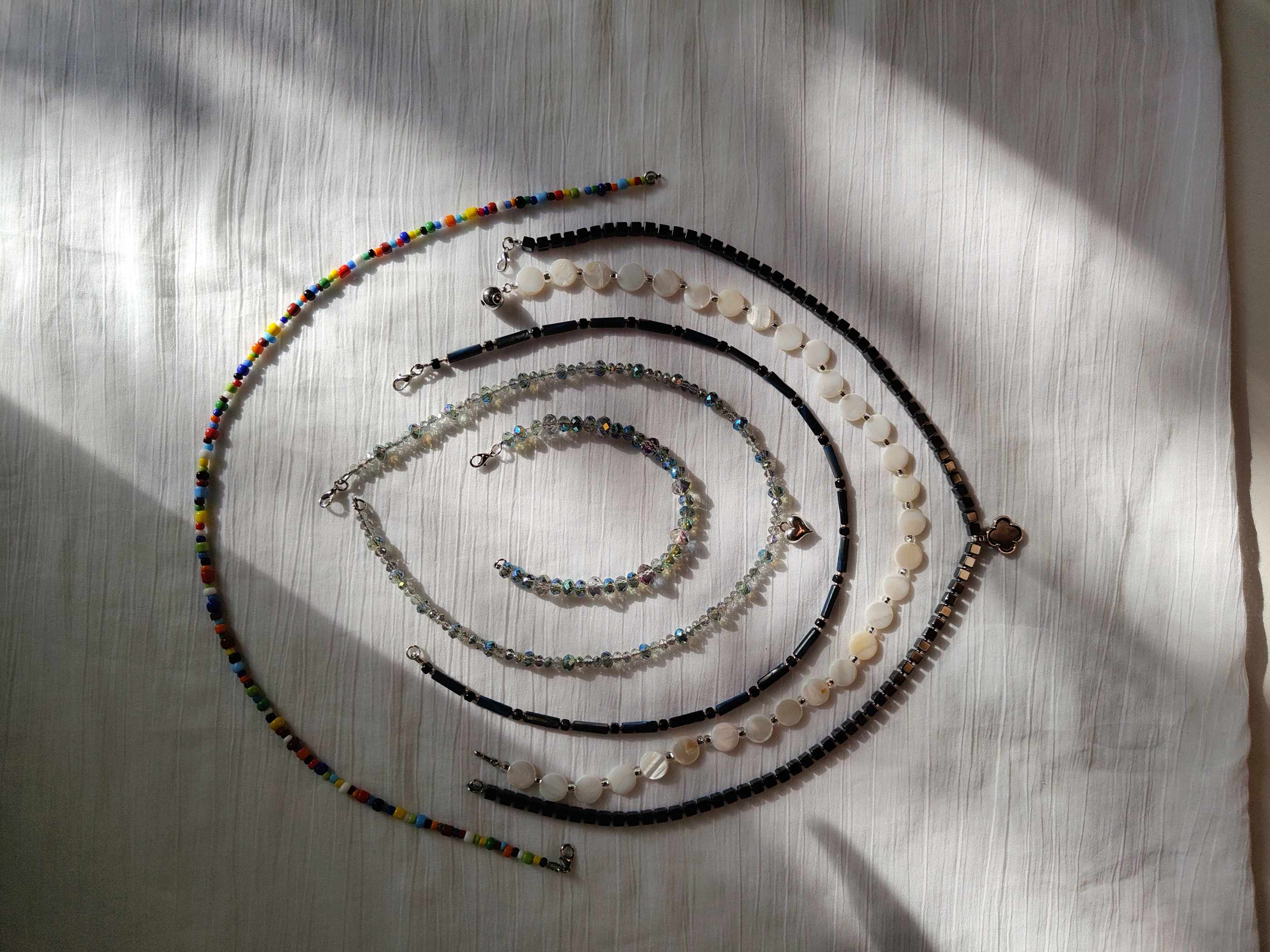 Не по теме конечно. Но когда ты работаешь рядом с творческими на всю голову людьми, в твоём лексиконе помимо вязальных терминов появляются такие "ругательные" слова как "кримп", "каллот", " протектор"))) Рондели, перламутр, гематит, микро-бисер. В планах ещё со шнурами из кожи поработать...