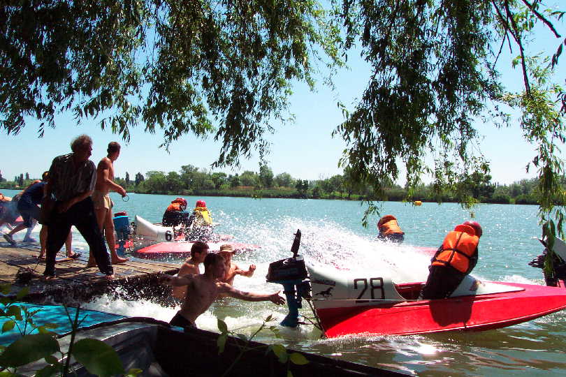Волгоградские заезды - техника, конечно, детская. Все-таки команды из ГДЮЦа и морской школы РОСТО. То есть - там дети. Классы SN-175, SN-250, SN-350. Или, если называть вещи своими именами, мотолодки с моторами Ветерок-8, Ветерок-12 и Нептун-23 (к последним, правда, до кучи пустили и корпус с Вихрем-30). Тем не менее - оно смотрится. Скорости - на уровне 100-сильных гидроциклов. В классе SN-250 - ездит нынешний чемпион России.