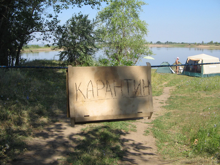 Или за Волгу, как например, в эти выходные. Нашли место где нет людей и мусора. Для уединения отгородились. Долго думали, что написать на въезде, кто-то предложил сибирская язва, кто-то энцефалит. Написали просто карантин :gigi: Загорать и купаться плавали на чистейший пляж.
