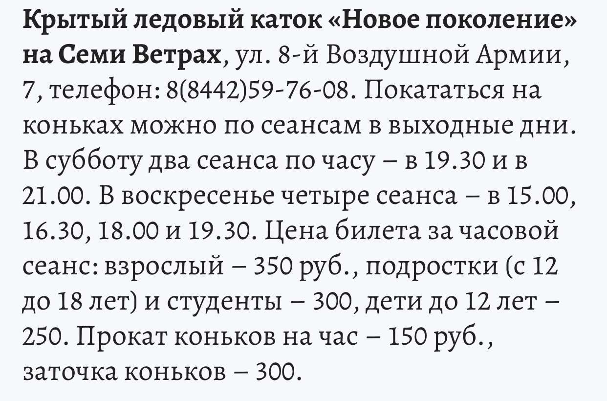 Правильно только на семи ветрах, остальные открытые катки. Ещё один крытый каток в Красноармейском Каток - Прайд Волгоград.