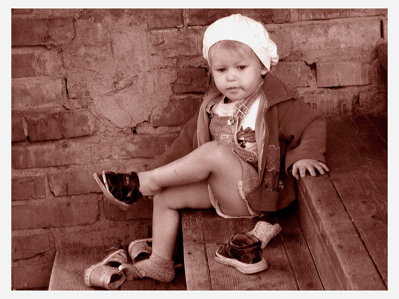 Тогда цвета получатся правильными - только и всего. :о) На мой взгляд цвета в этом кадре, мягко говоря, несовместимые, просто цветовая каша. А сам цвет - просто лишний. Джинсовый сарафанчик и красная курточка, имхо, не создают контраст с обшарпанной стеной, а просто диссонируют с ней. К тому же агрессивный красный цвет перетягивает внимание на себя, отвлекая от лица ребёнка. Опять-таки имхо, конечно. То имхо, которое заставило меня перевести кадр в сепию. :о)