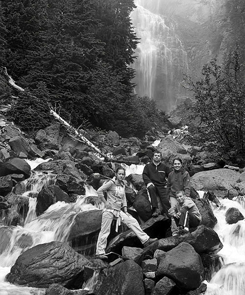 Небольшой конкурс. Небольшой тест для знатоков цифры и пленки. Две фотки, одно место и время, два разных фотоаппарата. Одна true bw, 10 долларов за 20 мегабайтный скан, вторая - переведенная в чб цифра. Можете угадаете что где? Да, и пожалуйста не надо искать в них потуги на высокое искусство. Просто пошли в горы, просто пофоткались. Из цифры я сделал ЧБ только с одной целью устроить этот небольшой конкурс. Более того, цифровой кадр из отбраковки, взял потому что точка съемки та же что и на пленку. В ином случае я бы не стал этого делать. И на ЧБ пленку я снимал не для паскудного пафоса, а для образовательных целей.