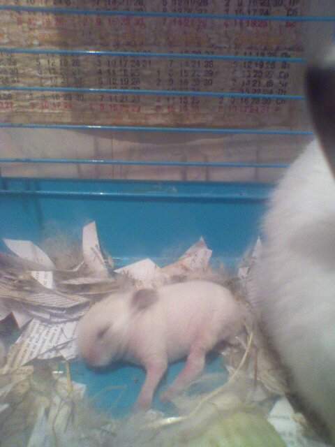 всё! не надо питомника!!! крольчиха родила!!!! почему то одного (может сожрали остальных сразу: крол ведь с ней вместе сидел).. валяется теперь в клетке такое маленькое лысое уё...ище, пищит чё то там, ногами дрыгает!!! сфоткаю-выложу.