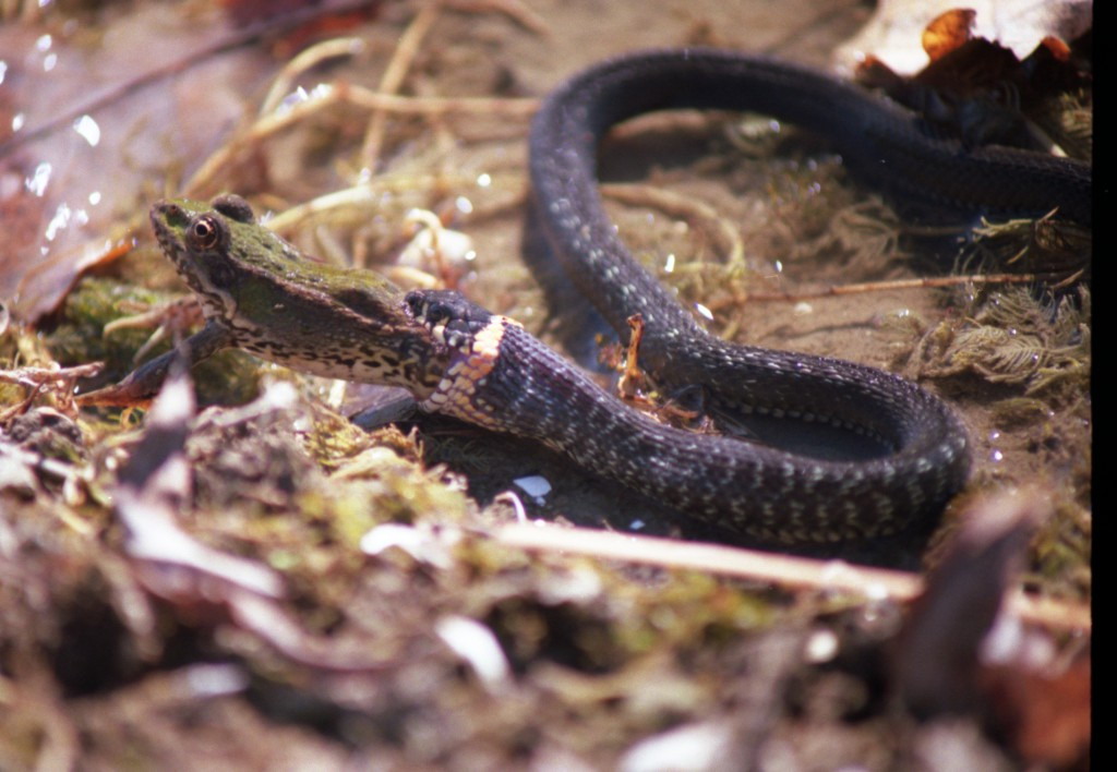 TerAL[168.7], Ужи практически всегда заглатывают лягушек не с головы, то ли им так удобнее есть, или, что скорее всего, начинают с того места, за которое схватят...