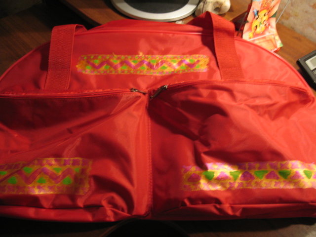 Вот фотки сумки. Вместо надписи "Финалгон"))) - роспись по ткани, краски были только 4 цветов, что вышло, то вышло...