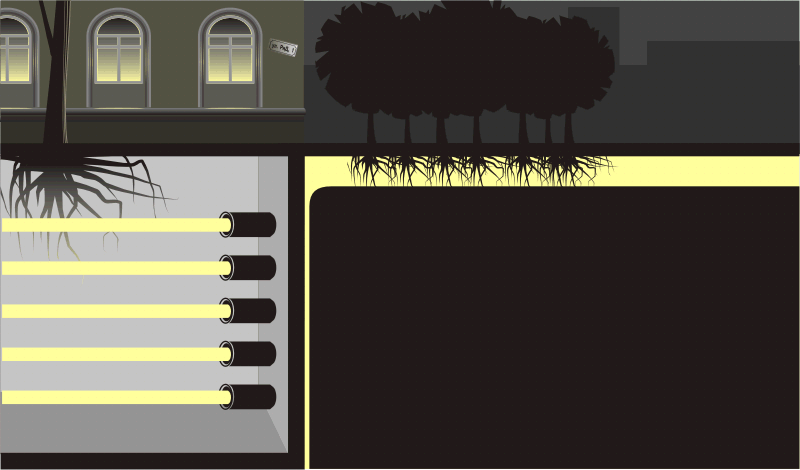 Корни в желтом потоке как символ слияния энергетики всего живого
