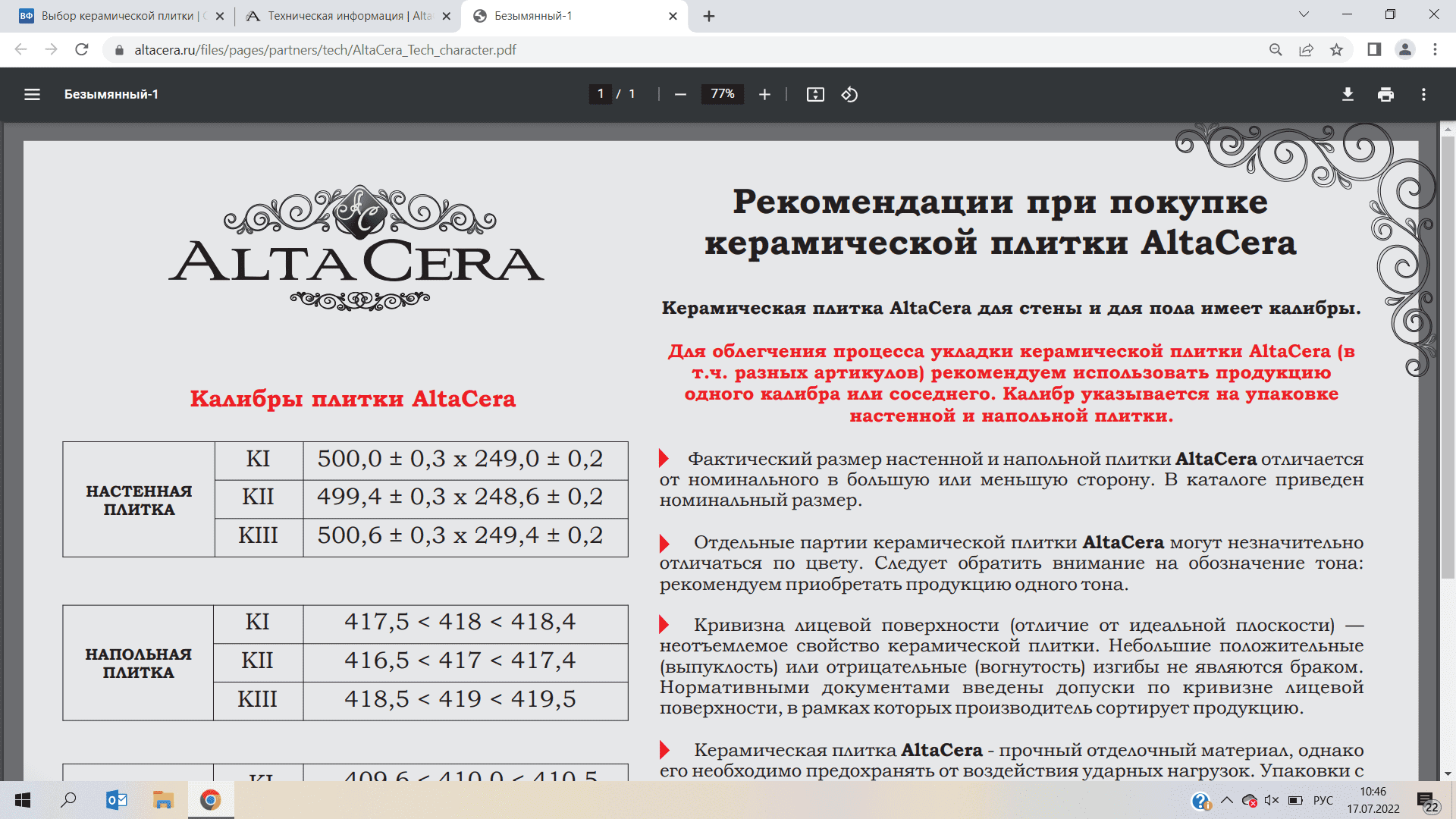 Вы, мягко говоря лукавите, есть другое обозначение Вашего "лукавства"? но его я употреблять не буду. Вы Были на заводах по производству керамической плитки? Я был на двух. Для понимания... И вещи, которые Вы пишите абсолютно не соответствуют реальности. Не все производители на своих сайтах указывают информацию по калибрам продукции, но она есть. Плитка - это материал производящийся из глины, которая после обжига имеет определенную степень сжатия (усадки). Сжатие керамогранита, о чем Вы пишите, выше чем у плитки, поэтому степень водопоглащения ниже и данные продукт можно укладывать на улице, он не впитывает влагу. Калибровка есть у всех производителей, без исключения. И по поводу обжига... вся керамическая плитка имеет двойной обжиг, декоративные элементы (по русски декоры) обжигаются 3 раза. И Altacera здесь ни при чем. Я открыл первый попавшийся сайт, на котором есть техническая информация по производимой продукции. И температура в печах одинаковая, разная степень сжатия продукции