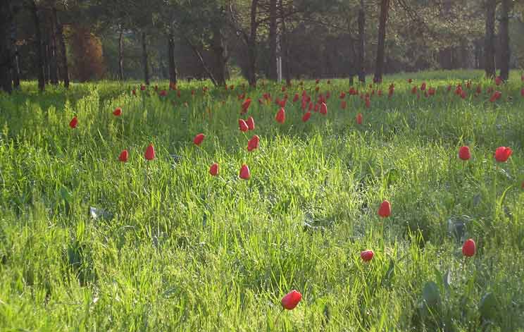 Не, тюльпаны не оттуда ;) Там только Бибирштейна, жёлтенькие водятся. Это по пути на Сарпинский увидел такую практически "природную" полянку в затрибунном сквере.