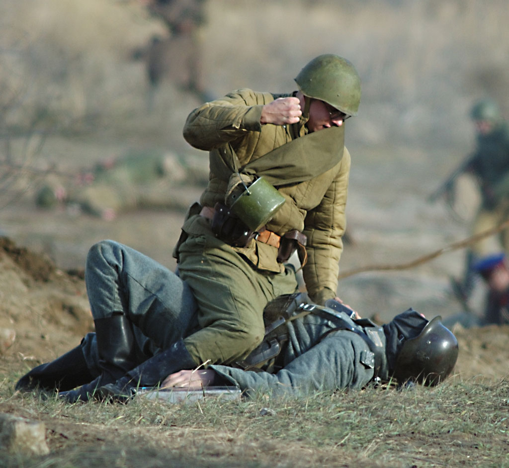 Интересно, а "убитые" долго еще валались на земле? Холодно , небось, трупом лежать в окопе то...