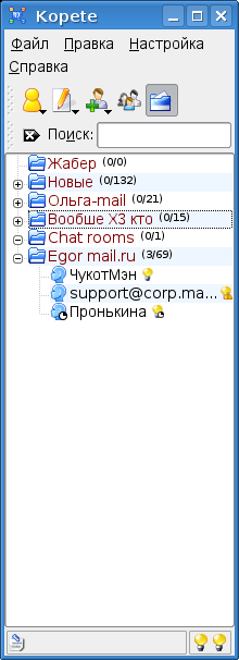 Nickey, скорее всего я в тупике:мне нужон спецсофт, для химиков.Одну програмулину я нашла, но она не заменяет полностью того, что мы обычно используем.И маленькая ремарка-я не профессионально с софтиной мучаюсь.Просто из 4х человек, работающих в неком куске бОльшего коллектива я-самый продвинутый юзер....А с етого года, как известно, в нашем любимом мордоре то бишь политехе софтина должна быть лицензионная....только давать ее никто не собирается...обещали винду XP и доктора вэба...и все.Так по мне проще поставить линукс(под него мож и бесплатная химсофтина найдется...), чем плясать с бубном у легальной винды, которую придет проверять какая-нить скотина, не понимающая ни фига , что мое дело не софтом заниматься, а, как бы громко это не звучало-наукой...Вот.накипело. OpenBoy, прелесть какая на скриншотах))) Черная така..красивая... Народ, все заинтересовали сразу.Пошлите куда-нить учить матчасть, а?С поправкой на то, что знать хотца не только зачем и почему оно такое, но и как оно такое.Или афтора книжки какой скажите...