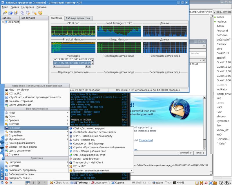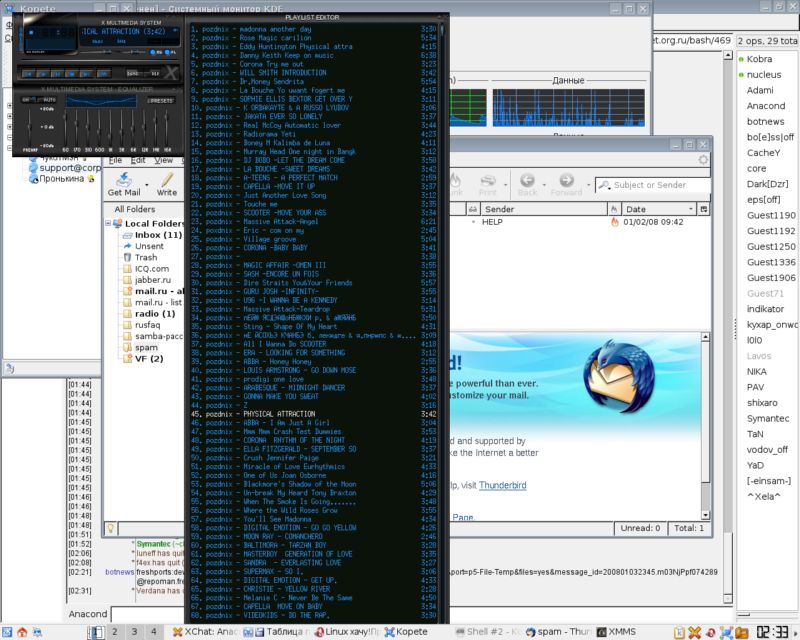 Вот еще пару вложений, аналог винампа и таск манагера: xmms и менеджер всего (всех датчиков температуры и еще кучи параметров, которыми могут обладать устроиства на локальной или удаленнои машине). И все это в общем - еще не настроенная системма, где половина лищнего, а половины - нет). Так что - вот, на суд общественности.