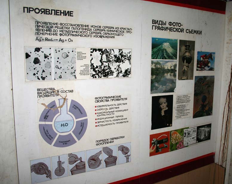 ... а технике фотографирования учить не надо? творчество это уже как бы и не преподаваемое дело. да это и есть рикладная фотография, но более чем уверен что именно такое обучение технике съемки в том объеме и качестве не было в ближайших 1000км последне 20 лет, (до МСК))), там скорее что то есть). Да, конечно, сейчас соскочили с мокрого ч/б процесса фото, поэтому % эдак 80 действительно качественных знаний не будет, хотя наврятле кому и надо... с того фотокомплекса фотки плакатов))). но это уже единственное навернео что осталось, вообще там такая туча информации на них содержалась, можно пройтись и реально воткнуть много тмелочей, думаю действительно информативные стенды заныкали где то. эти два так... дурные.